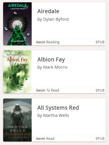 Once you've added some ebooks, you can find them in your Library, download them to your favourite e-reading device and get them read! Use any web browser (like the one on your e-reader) or any OPDS-compatible reading app.